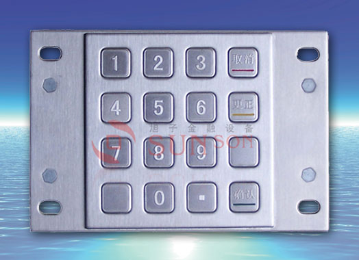 16键,采用进口印花不锈钢,采用韩国Anycall镀金弹片开关,适用于各类自助服务终端的数据输入