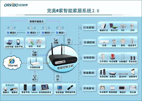 欧瑞博的 “完美e家”无线智能家居系统系统采用全球领先的无线物联网对接的Build block系统架构和兼容传统产品设计思路,提供一套智能、舒适、安全、即装即用、无需施工的“平民化”智能家居方案,无论何时何地,用户都可以通过手机或电脑控制家电和视频监视,实现智能灯光、智能空调、智能影音、窗帘控制、视频监控、安防报警、流量检测、智能节能等智能控制,是一款功能完善、高性价比的家居智能化方案。