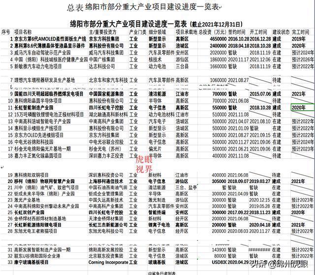 此外,绵阳产业链的打造也终于在2021年”拨得云开“,这一年绵阳先后落地了多个产业链上项目,见绵阳部分重大产业项目在建进度一览表。