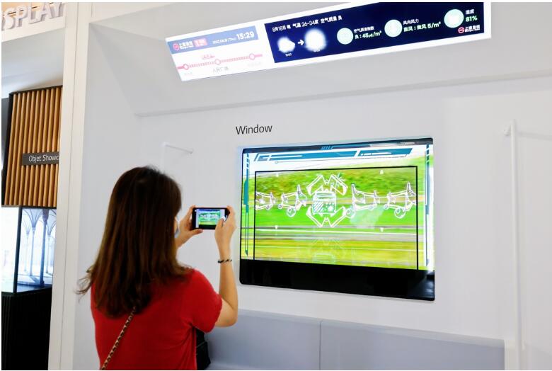 以地铁轨道的智慧化为例,纵观其发展历程,一直在如何实现列车与乘客的高效交互方面不断前行。此前,虽然LED显示屏、条形屏等早已被应用于列车车窗,方便乘客获取出行信息和轨交视讯服务等,但也在一定程度上阻挡了乘客观赏窗外风景的视线,也无法与乘客形成交互,只是单项的信息展示,与真正的智慧交通愿景相距甚远。