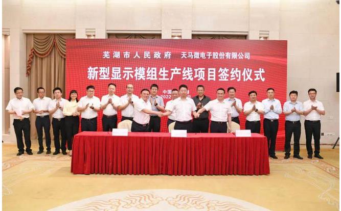 6月8日,市政府与天马微电子股份有限公司签订新型显示模组生产线项目投资合作协议,鸠江区政府与天马微电子股份有限公司签订新型显示模组生产线项目投资合作协议之补充协议。市委书记单向前,市长宁波,中航国际党委委员、副总经理黄勇峰,天马微电子股份有限公司总裁成为,副市长姚凯等参加签约仪式。