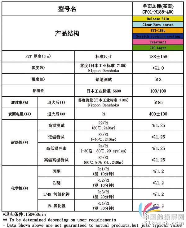 单面加硬(亮面-188微米)ITO膜(深圳市正和科技有限公司)