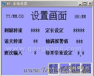 (1)参数设置画面:可设置转速、定长、报警值等重要工艺参数,如下图: