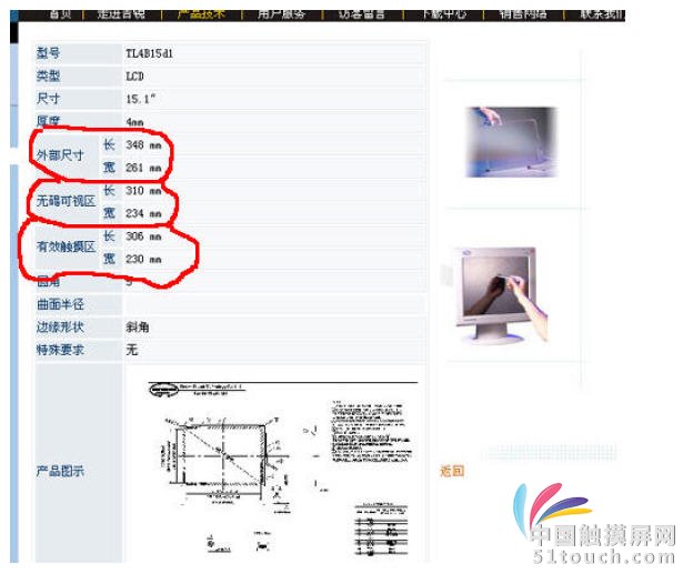 经过以上的各步的选择,您已经大致确定了所需要产品的型号,比如您为您的15’’LCD显示器选择了:TL4B15d1,下面您可以初步判断这款触摸屏是不是可以装入您的显示器。可以在我们的网站上找到TL4B15d1,点击进入关于此型号的介绍: