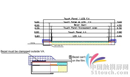 Bezel's open area 应该要大於active area 0.3 mm以上。