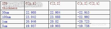 工艺三维结构直接关系到触摸屏的2个重要电容参数:感应电容(手指与上层ITO)和寄生电容(上下层ITO 之间,下层ITO 与LCD 之间)。 ITO 的厚度决定了其电阻率。