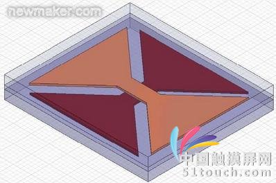 触摸屏设计的目标就是尽量减小电阻和寄生电容,并同时增加感应电容。系统优化设计包括结构优化和版图优化,涉及到十几个物理和电学变量。由于缺少解析表达式,复杂边界条件下的MAXWELL 方程组数值模拟几乎成为唯一的选择。 绝大多数数值计算软件需要直接输入三维结构图,有的甚至要求对边界的数值描述文件。另外,这种结构绝缘层以及ITO 极薄的厚度也会给仿真软件带来非常巨大的计算难度,甚至无法准确计算电学寄生参数。由于一系列困难,使得优化仿真的前端工作变得庞大,使整个优化设计变得几乎不可能。
