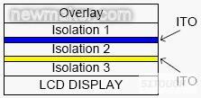 • 覆盖层 (overlay):大多是钢化玻璃(0.4~1mm),也有可能是PET(聚对苯二甲酸乙二醇酯)。PET 的优势在于触摸屏可以做到更薄,而且比现有的塑料和玻璃材质更加便宜;