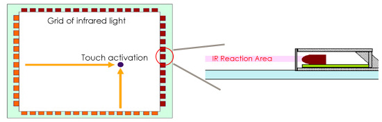 红外线式触控面版具有极高的灵敏度,采用光遮断原理让您可以毫不费力的使 用它,即使您是使用细如头发,只要红外线被遮断就立即感应,可以真正作到触控 灵敏,快速反应的地步,超长的LED寿命,保证可以使用五万个小时,定期维护使 用下寿命更长,20dpi的分辨率,足够应付一般功能的人性化接口,相当适合Kiosk 公共资讯机台、触摸屏显示器使用。