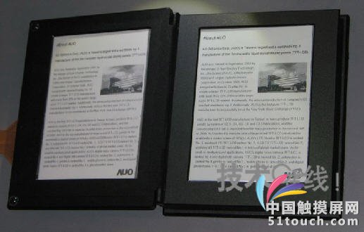 在“Display Taiwan 2009 (第11届国际平板显示器展会)(参阅本站报道)”上,台湾友达光电(AUO)在其展位的Leading Mobile Technology展台上首次展出配备了以美国矽峰(SiPix Imaging)的微杯技术生产的电子纸和触摸屏的电子书,吸引了众多参观者的眼球(图1)。