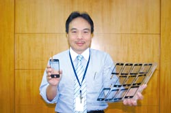 图示:富创得董事长吴明发对现有每月12万片投射式电容触控面板表示满意,年底前预计增为5条生产线产能增至每月60万片