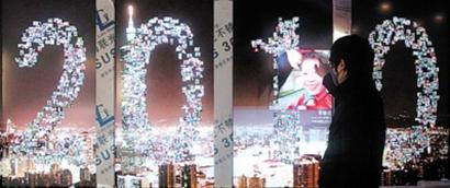 【导读】:测试人员正在测试世博E片区台北馆互动体验区内的“微笑的力量”触摸屏。不久之后,游客能以触摸的方式,参与“微笑的力量”体验。“微笑的力量”是由台北市民的笑脸组成的“2010”数字,随着手指轻点或延展,一个个真诚的笑容会随之出现,感染现场所有的游客。