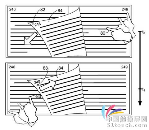 北京时间07月09日消息,中国触摸屏网讯, 微软刚刚在美国专利和商标局拿下了一种被命名为Virtual Page Turn的电子书触控翻译手势专利,专利号20100175018。