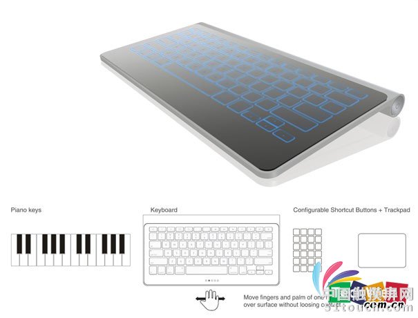 【导读】:这款键盘——真是太酷了!带有无线蓝牙,Wi-Fi,手势控制,触摸屏表面。完全可定制的个性化配置功能,设定快捷方式,跟踪记录和视频回放。而且,零噪声!还可以弹钢琴!有了它,只给我一个屏幕和CPU我就满足了!