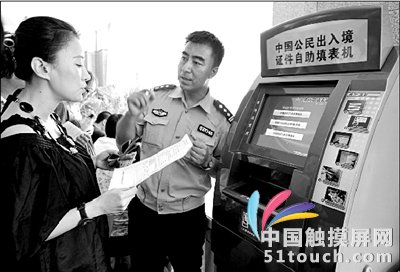 北京时间07月26日消息,中国触摸屏网讯, 昨天下午,西城公安分局出入境办证大厅内,北京警方推出的快速办证业务正式启动。市民通过大厅内设置的自助填表机,只需5分钟即可填写好出入境申请表。