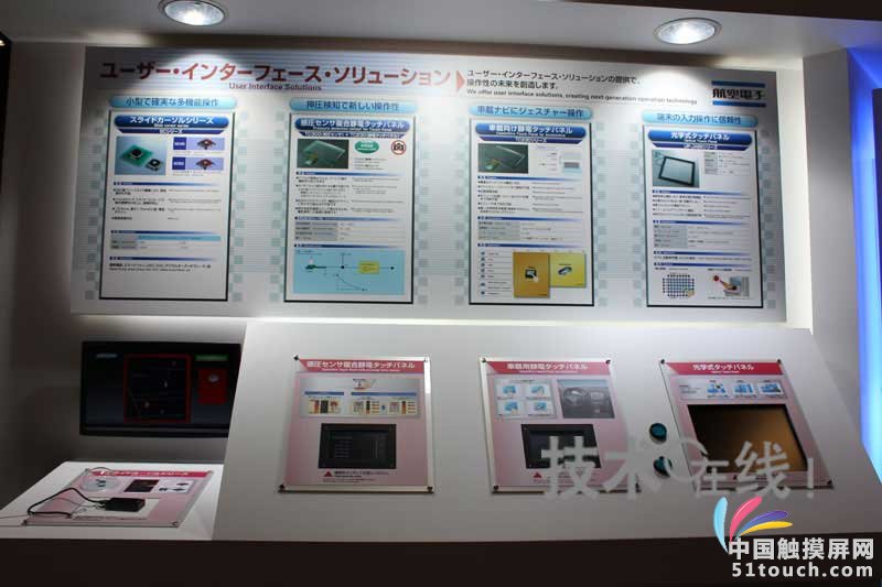 北京时间10月09日消息,中国触摸屏网讯,日本航空电子工业在2010年10月5日开始举行的“CEATEC JAPAN 2010”上,展出了在静电容量式触摸面板上组合使用了压力传感器的新型界面“压力传感器复合静电触摸面板”。通过静电触摸面板检测出正确的触摸位置,同时将压力传感器识别的信息反映在操作中。在该公司的展台上进行了如下演示:通过按压滚动条图标(Scroll Icon),控制滚动条的速度;利用按钮输入数字时,只有施加一定的力量才能进行输入。