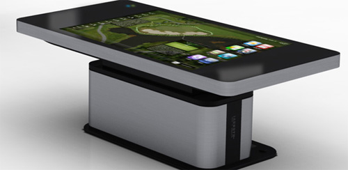 【导读】:韩国Kintex展会上,现代IT部门展示了一款支持触摸的茶几产品,它的尺寸高达70英寸,可显示1080p分辨率,这款产品和微软之前提出的Surface概念桌面非常类似,不过它更像是将一台大尺寸的电视按上触摸屏以后横过来用,目前相关细节和量产时间都不清楚。