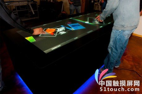 【导读】:多点触摸技术应用在手机上,通常只有2点,但是100寸的屏幕,如果只允许2个人玩的话,那太小气了点,Ideum推出的MT-50,达到100寸,可视面积86寸,显示比例16:5,分辨率2304x800,在界面操作上它是基于Flash平台,GestureWorks触摸架构,最大的卖点就是支持50 个手指操作