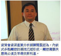 除成本考量外,支援多点触控成为中小尺寸面板标准规格,也让面板厂商有不得不投入内嵌式多点触控的压力。陈赐贤认为,在产品规格日益雷同,价格竞争陷入白热化的面板业中,提供一站式採购服务是许多供应商创造附加价值的策略之一。若客户普遍寻求可支援多点触控的面板解决方案,面板供应商势必要有所回应,方能脱颖而出。