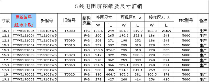 线形尺寸汇编汇集了本公司已开模做做样的各种尺寸型号(从1.3inch-19inch),尺寸详情请点击触摸屏图纸下载对应的尺寸型号。